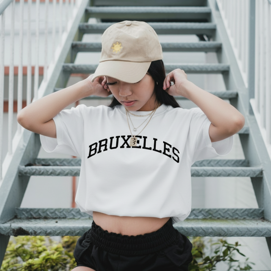 T-shirt Oversize Bruxelles – Blanc & Noir | 100% Coton Bio Premium