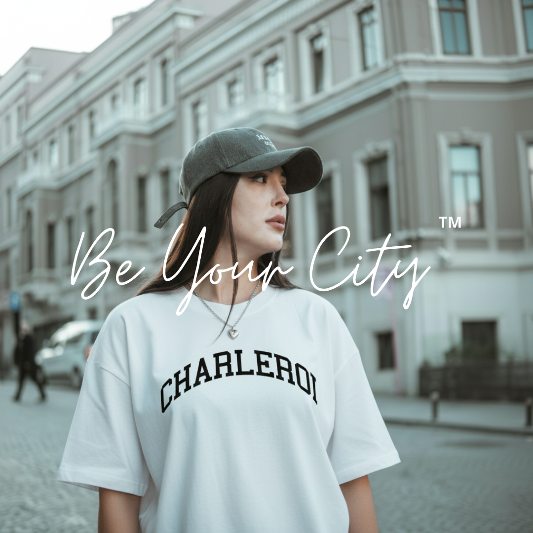 T-shirt Oversize Charleroi – Blanc & Noir | 100% Coton Bio Premium
